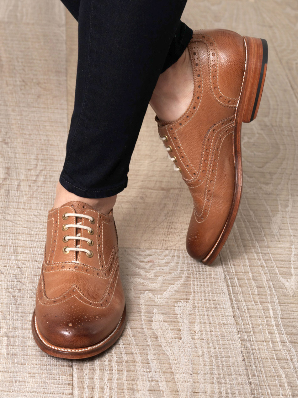 In oxfords, the strap for the laces are tightly sewn into the base, and the laces are hidden under the tongue. The derby straps sewn on top, so that, putting on, they can be raised. Brogues outwardly differ from oxfords only in the presence of perforations and a toe in the shape of the letter W.