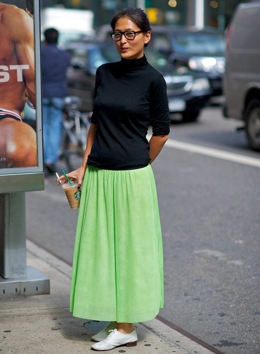It is better to abandon the maxi skirt, because it will hide the lacing, and all the highlight of your shoes will be lost under her hem.