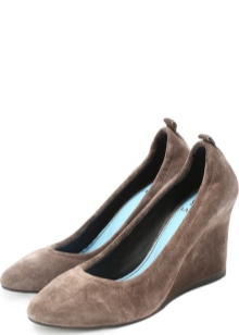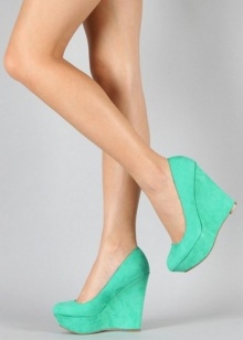 Another universal model that goes with any clothes and goes for everyone is blue suede wedge shoes. They can be worn with a business suit. Brown suede wedge shoes are an ethno style option. Red wedge shoes are worn with evening wear.