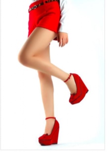 With all the flaws, wedge shoes slim the full figure, make the legs longer.