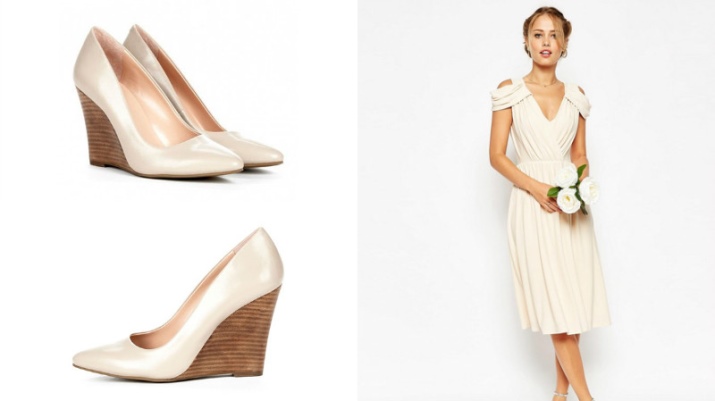 Wedge-heeled shoes are suitable for almost any style, even sports (there are wedge sneakers). Good wedge shoes are combined with delicate dresses (for romantic young ladies), evening dresses.