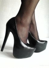 - Scully model from the same brand. Shoes with a heel at fifteen and with a platform of five centimeters and with a smooth sole;