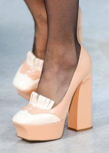 The reason for the popularity of shoes with a thick heel and a platform was the combination of relative comfort and showiness in these shoes. Shoes with a powerful heel with a platform are much more convenient than shoes with a heel of a pin of similar height, because at the expense of the platform the rise of the foot can be lower while maintaining the correct height of the shoe, which means that the legs will not tire so quickly.