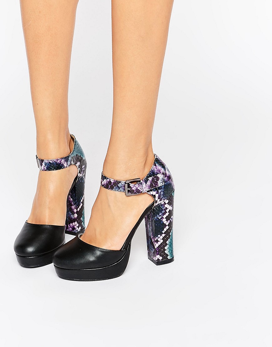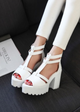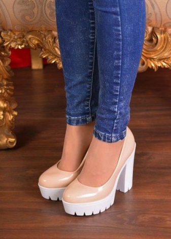 Shoes with a massive heel with a platform can be presented in several versions:
