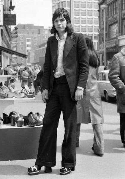 For a short time, the high heels returned to men's fashion in the 70s of the 20th century, when stars of show business flaunted in platform shoes and high heels. In general, such shoes at the time were very fashionable to wear, as well as flared pants.