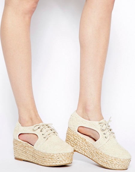 - espadrilles - this is how the traditional Catalonia footwear with a fabric upper and rope sole was originally called. Now fashionable shoes with the same name can be not only on the wedge or just on the platform, some models are made with a thick heel.