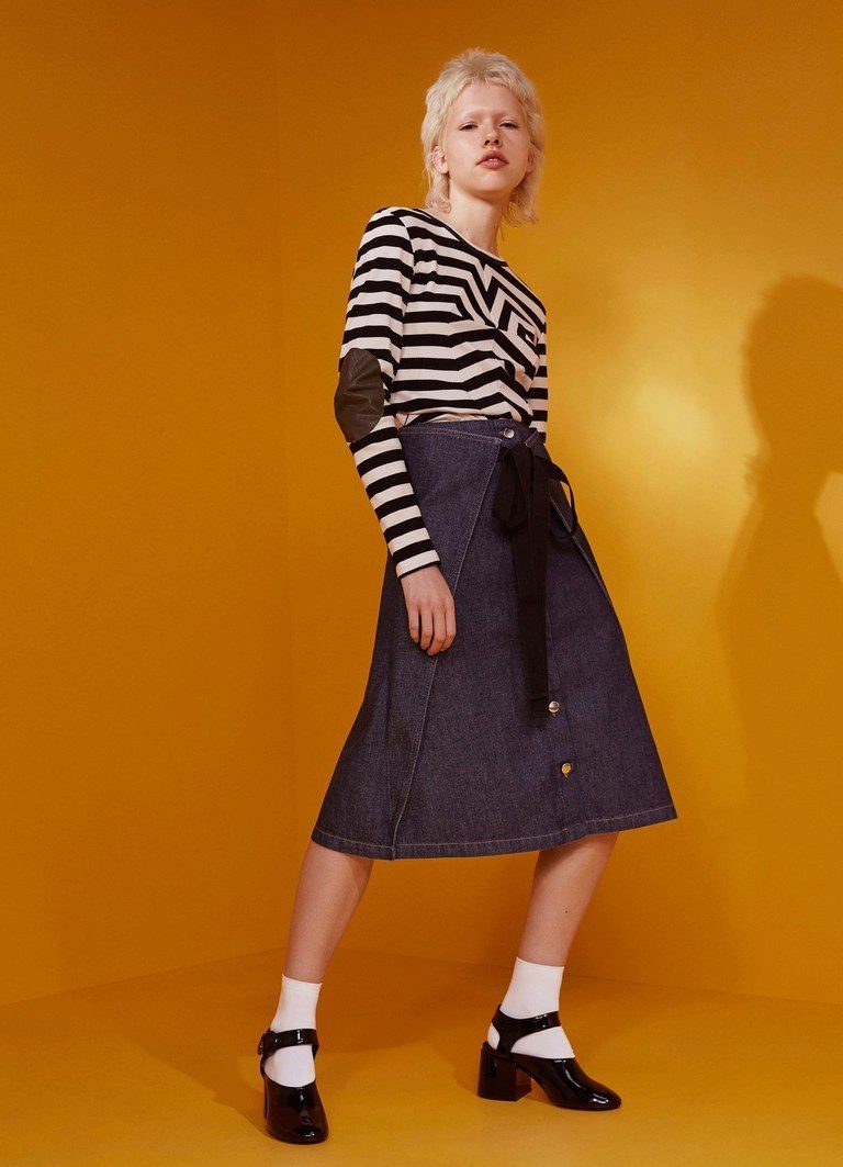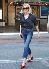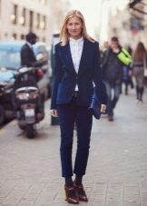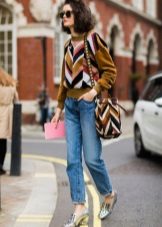 If you still decide to give preference to jeans, choose a model of an interesting style. It can be not only narrow skinny or torn boyfriends, but also classic models, or flared jeans in the style of the 70s.They will look particularly well with shoes on a massive wooden sole.