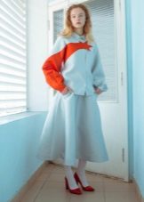 The combination of a light air skirt with shoes with massive heels is one of the fashion trends. Stylists argue that with this style of skirt you need to wear just thick, not thin heel. Moreover, they advise to avoid studs at all if you want to wear a skirt.
