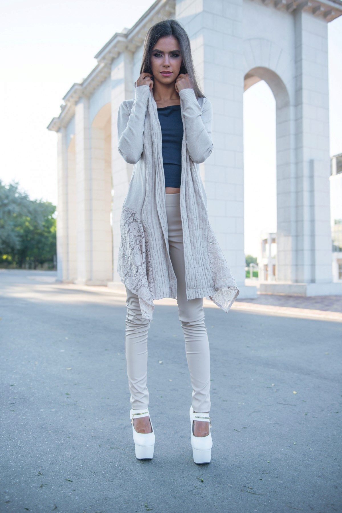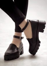 If you chose closed shoes with thick soles, they can be worn in the cool season, combining with various outerwear. This may be a raincoat, leather jacket, leather jacket, denim jacket or a voluminous cardigan.