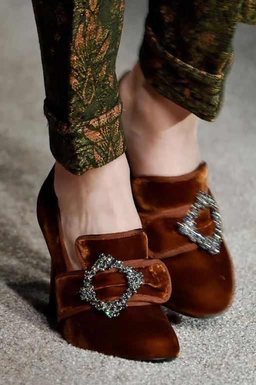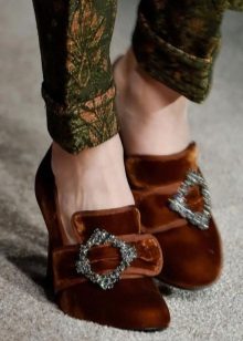 Choose your shoes from the incredibly topical velvet to go out. This luxurious material can be decorated not only the top of the shoes, but also the heel. Loafers with low heels, which are suitable even for everyday wear, are especially popular.