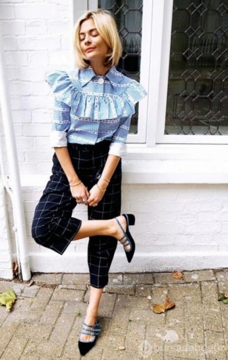 The office will be appropriate length midi, which will demonstrate the elegant ankles. This combination will look good on slender fashionistas tall, and miniature girls should avoid it.