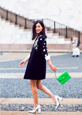 - It is better not to combine white clothes with white shoes. This outfit too attracts attention and is associated with the image of the bride. It is better to choose shoes a tone or two darker than clothes, and diversify the bow with colored accessories.