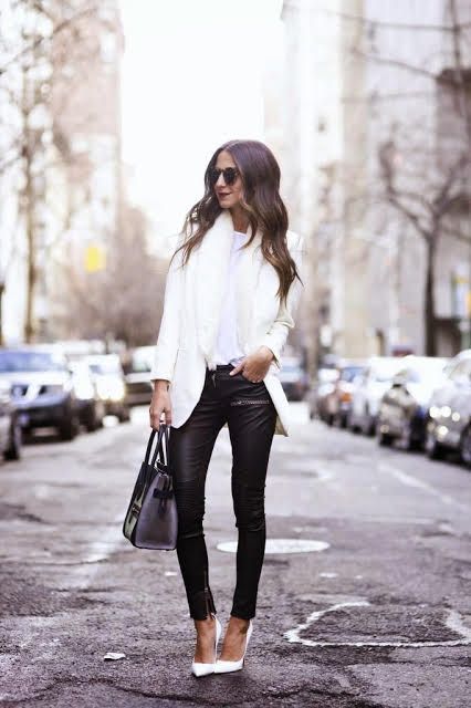 The combination of white shoes and a black and white alliance is a great option for an office or business meeting.