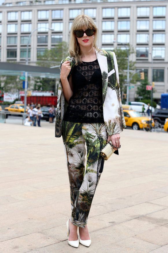 White shoes look good with bright colors - blue, red, yellow, green and so on. It is good if bright clothes will be decorated with any white print or accessories of the same color.