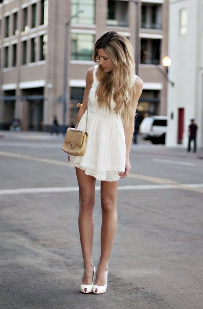 White high-heeled shoes are often worn in the summer, therefore, as a rule, they do not combine shoes with pantyhose or stockings. The shoes blend beautifully with tanned skin, creating a wonderful natural contrast.