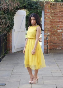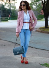 Yellow shoes with jeans - a bold and bright decision for the summer season. Having added such a dress with a monochromatic blouse of blue or black colors, the girl will look very stylish.