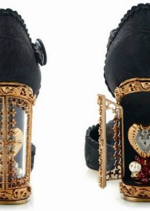 Modern designers rarely attracts a classic heel in 7 cm, more often they prefer very high heels. At the same time, they like to experiment, decorating heels with metal inserts, rhinestones, stones and other decorative elements.
