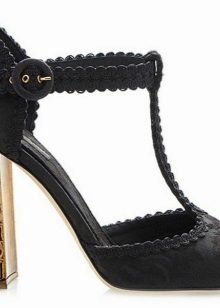 Shoes with metal inserts are suitable for publication. Combine them with a cocktail or evening dress, romper or evening trouser suit.