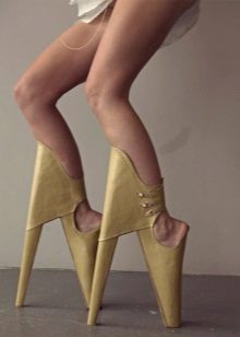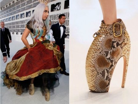 Shoes with very high heels are not designed for everyday wear. They are designed for fashion shows, photo and video. Only a few girls decide to wear shoes with breathtaking heels, as Lady Gaga does.