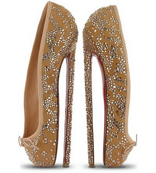 The shoes have a heel of 8 inches (a little more than 20 cm), a branded red sole and decorated with iridescent Swarovski crystals. Chic appearance, but it is not at all wearable. These shoes are designed to simply put it on the shelf and admire.