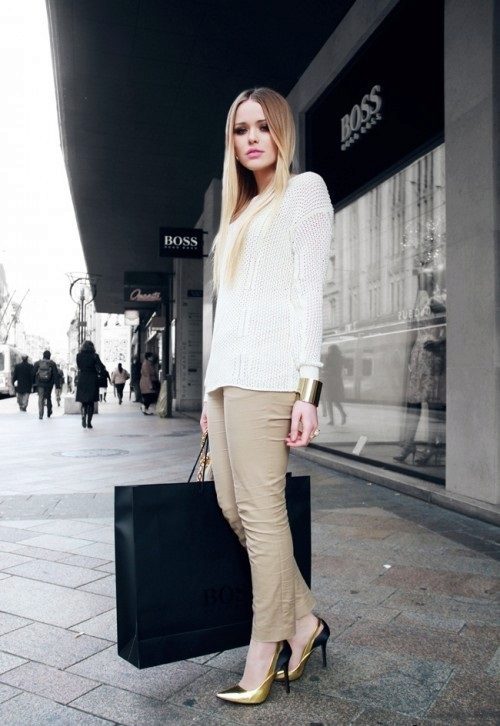 Shoes with open heel or toe look very attractive. They are light, graceful and seductive, visually shortening the size of the legs, they make the image very gentle and feminine.
