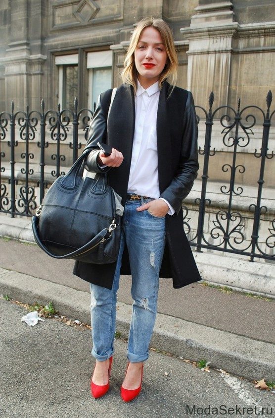 In the business dress code will be appropriate black, dark blue, gray classic boat.Wear them with a business suit, shirts and blouses, a pencil skirt and a stylish sheath dress. Sometimes a dark red model can serve as an interesting accent of the image, especially if you complement look with lipstick to match the tone.
