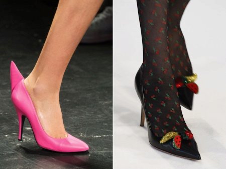 Pointed toe shoes still do not go out of fashion. Models with ankle strap, which are presented by Saint Laurent and Nina Ricci, will fix the shoe on the leg, and provide comfort while walking.
