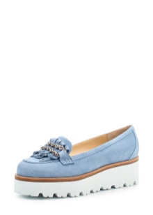 Options on the platform are suitable for those who focus on practicality and a small heel. The versatility of the line allows you to choose a pair for a bright personality and for classic natures. Smoky-blue shoes on a white platform look harmoniously at the foot.