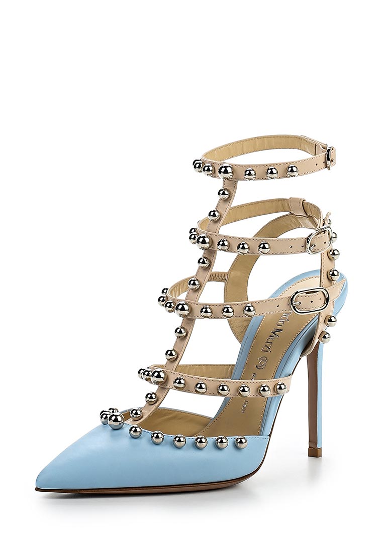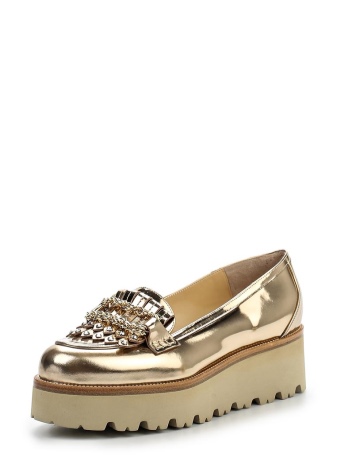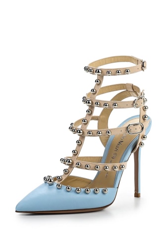 For the most creative and daring fashionistas brand offers sandals with thick heels and a buckle around the ankle. The brilliant color of the texture of the shoe is as close as possible to the natural skin tone. The highlight of the pair is the golden metal fittings, generously scattered across the heel and the heel. An ensemble with such shoes will be smart.
