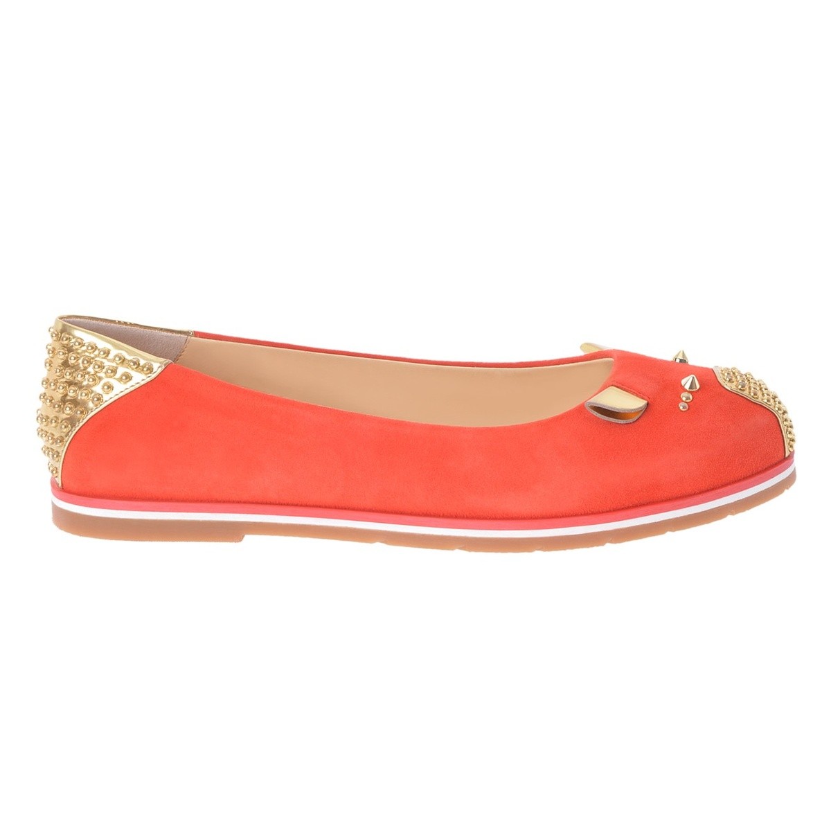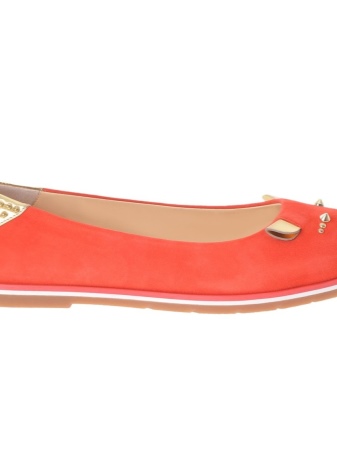 Delicate and neat ballet flats of the Italian brand have a comfortable shape and are perfect for the fair sex. Models are not inferior to high analogues, they are perfect. A beautiful fuchsia pair with metal flowers is decorated on the side with golden letters of the company logo. She will add tenderness both to a daily bow, and evening.