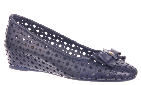 Models with perforation differ in design features: not only the boat itself is perforated, but also the wedge. Magnificent purple pairs with fringing on the top are decorated with a decorative multi-layered bow with a gold buckle. The sole in tone-based has a small heel of 1 cm. These shoes will complement any summer look.