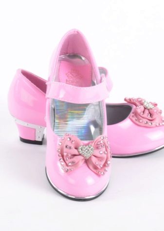 Well, what a girl does not like pink. In shoes, this color variation is used very often. Little fashionable women face delicate pink shoes, which can be complemented by a variety of decor.