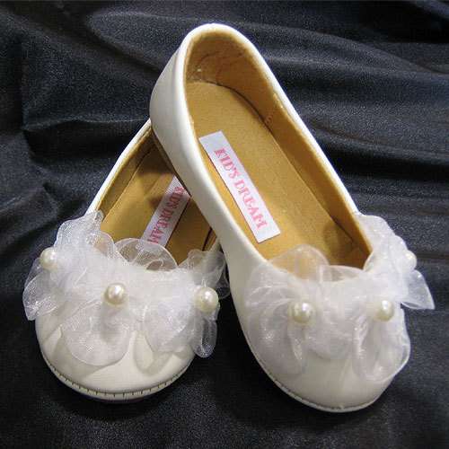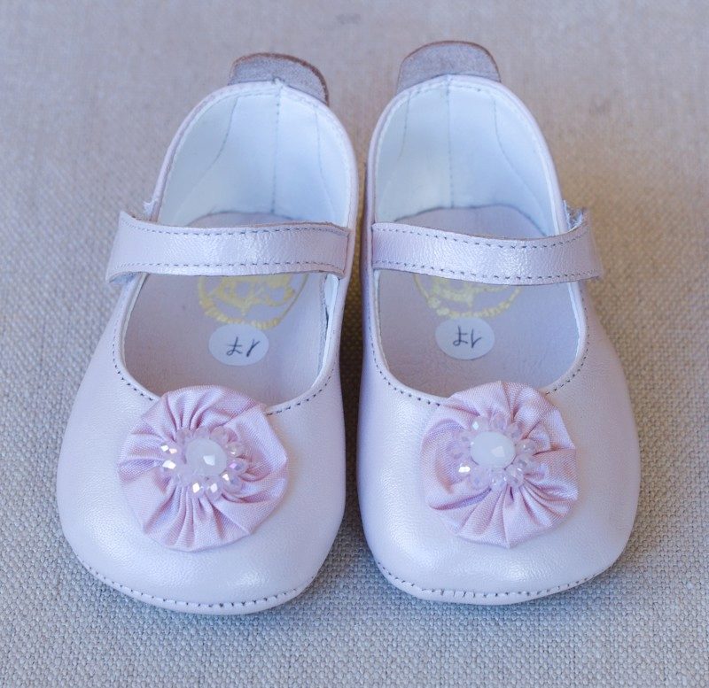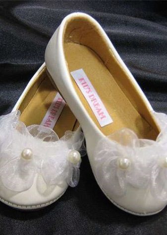 Baby shoes are most often produced in white. These shoes fit any dress, gives the image of freshness, innocence and airiness. You can have one pair of white shoes, but shoe her for various outfits.