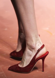 Open heel shoes look harmoniously with short and narrowed pants, as well as straight skirts and pencil skirts. The ideal is the tandem of such shoes with elegant and sophisticated dresses of various lengths.