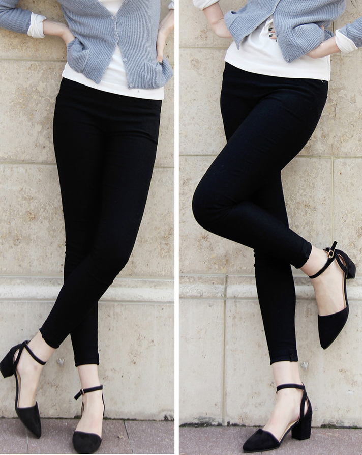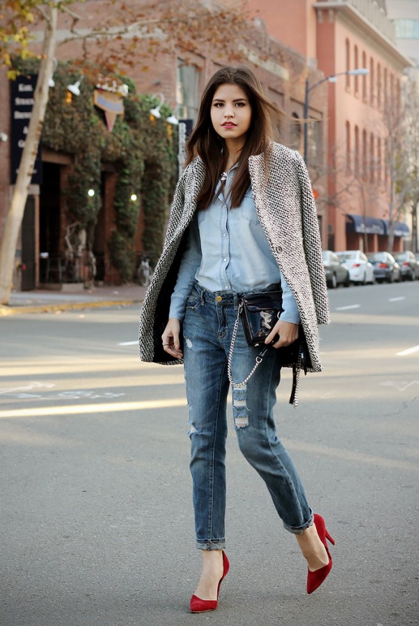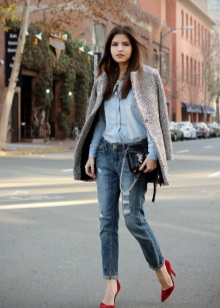 - with classic and flared jeans, as they will fall under the open heel edges (it will look ugly and ruin denim);