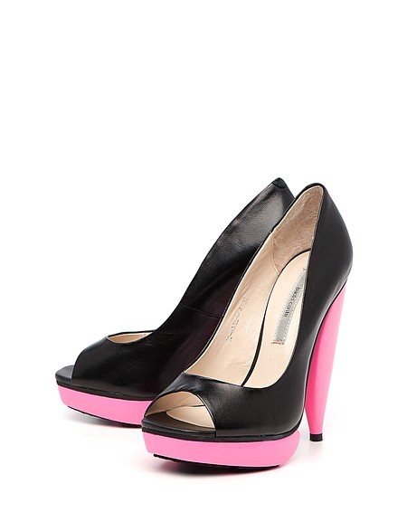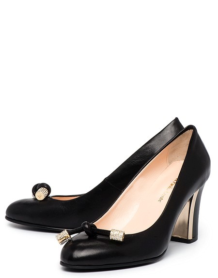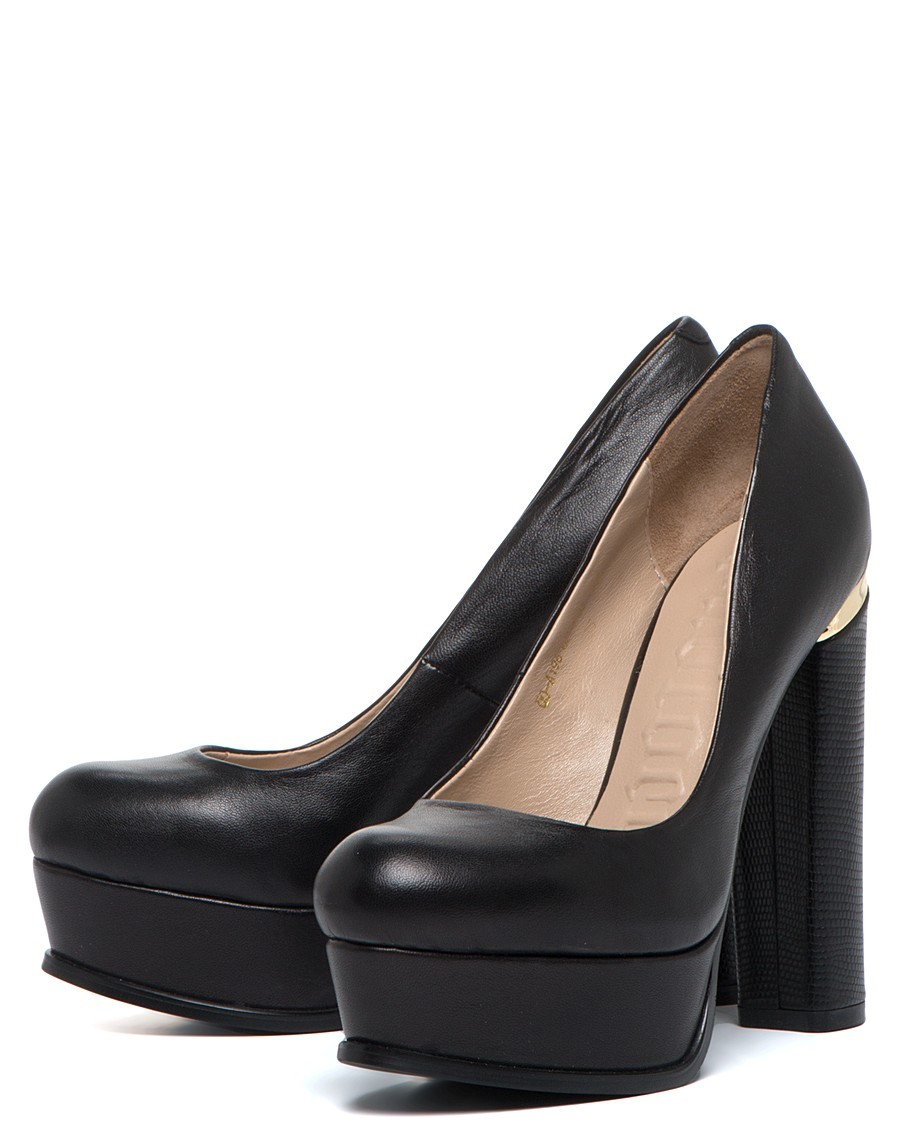The main element of decoration is a peculiar black patch on the heel of the product, which is a kind of continuation of the heel in the form of a loop. Shoes are made of genuine leather.