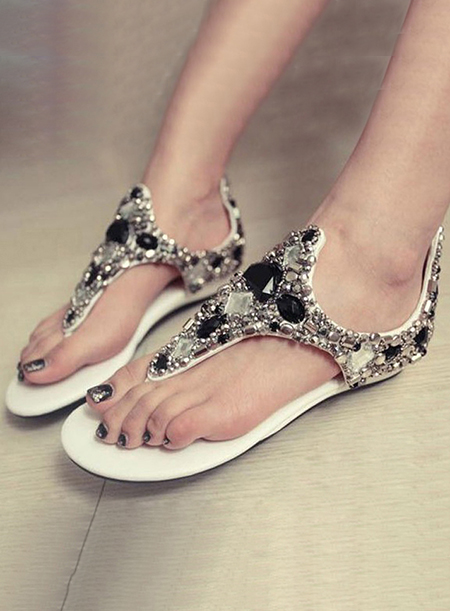 - Choose models decorated with sequins, rhinestones, chains, beads or feathers. They are perfect for both beach parties and day walks.