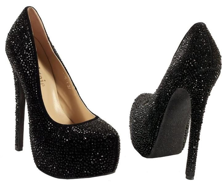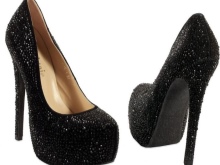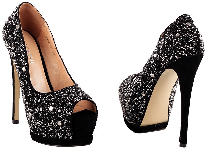 To attend a party or a festive event under a black dress perfectly fit shoes decorated with rhinestones, sequins, straps and other attributes.