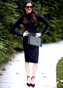 The classic option is a combination of black shoes with a black dress. This elegant ensemble is perfect for a business meeting or going to work.