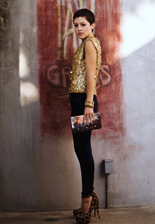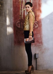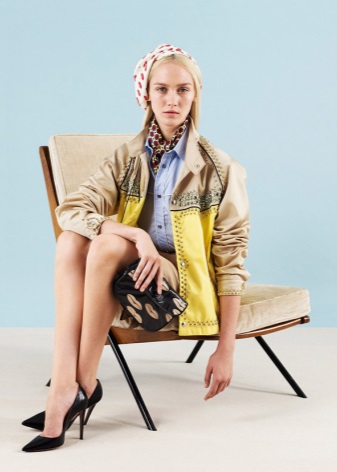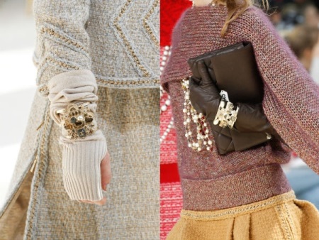 With fashionable Prada shoes, branded handbags and clutches of patent or matte leather look great. An image complemented with such accessories with fur inserts or metallized details will look very expensive and elegant.
