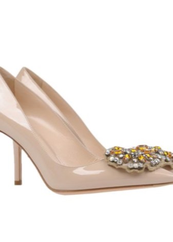 - pointy shoes with metallic heels;