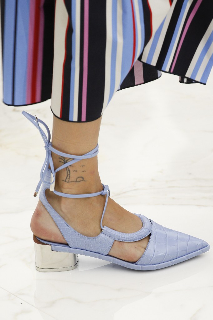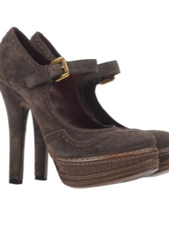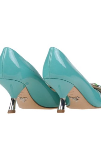 Classic Prada shoes made from matte and patent leather or suede with a stiletto heel perfectly fit almost all stylish looks. The brand offers a choice of fashionistas with traditional models with a rounded or pointed toe, flesh-colored, pink, black, blue and blue. The suede toe cap can be decorated with textile flowers and bows.