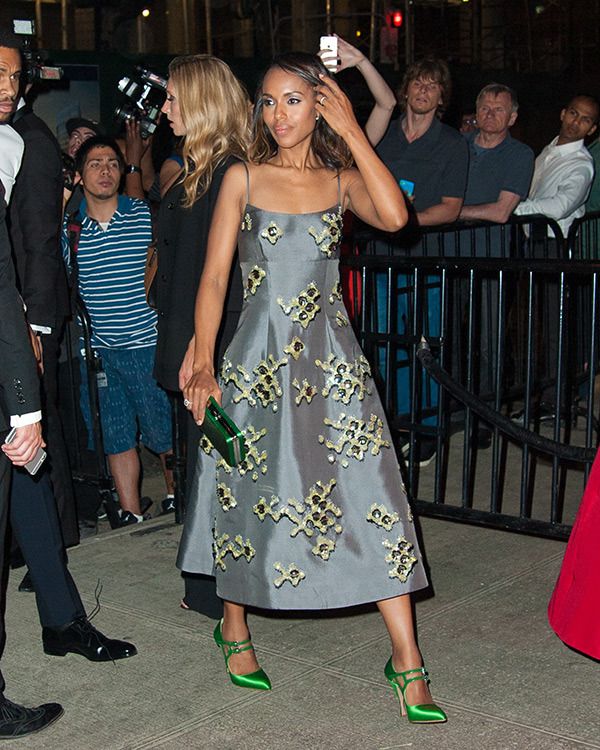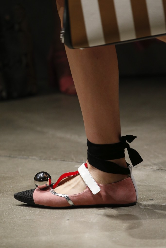 An evening outfit with Prada shoes will shine if you decorate it with large beads, necklaces and bracelets.