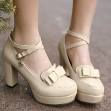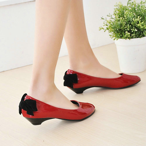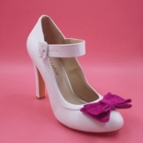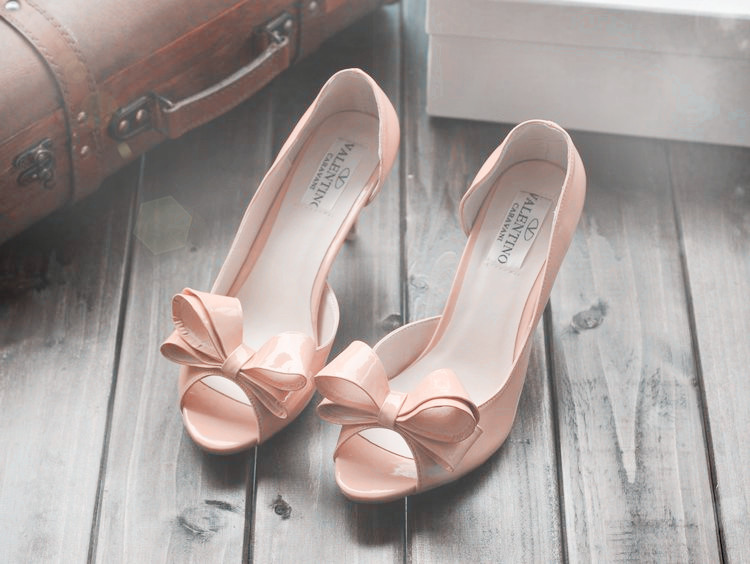 - classic plain dresses with shoes matching the color and decorated with a bow on the toe.