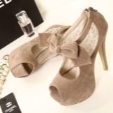 Stylish shoes with bows on the back look very bright and original. In such shoes, every girl reincarnates into a princess. Especially gently look bows of flowing textiles or durable ribbon. Unusual decor can be mounted on a regular backdrop, a zipper or a strap.