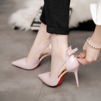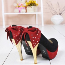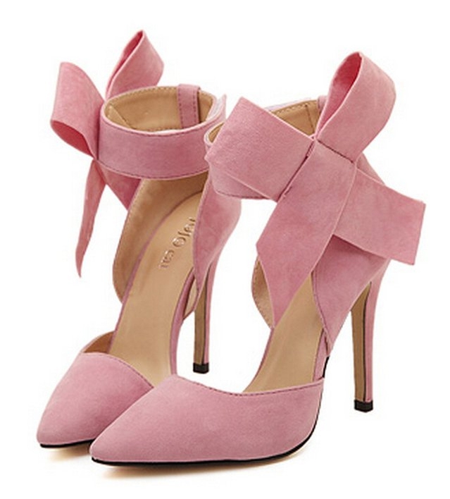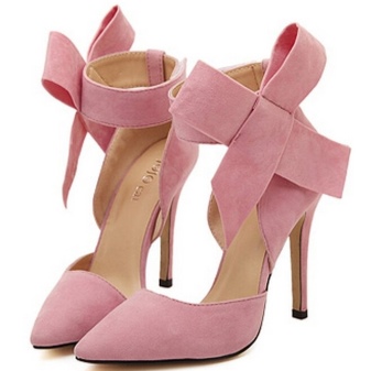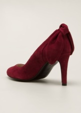 The bow, located behind, looks more feminine and sexy on high-heeled shoes. Hairpin and a glass are ideal options. Particularly bright and elegant look model shoes with bows of pink, purple, burgundy and red.