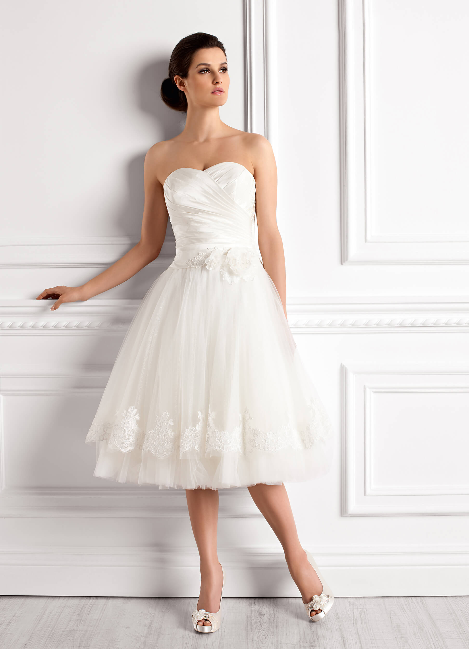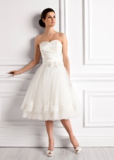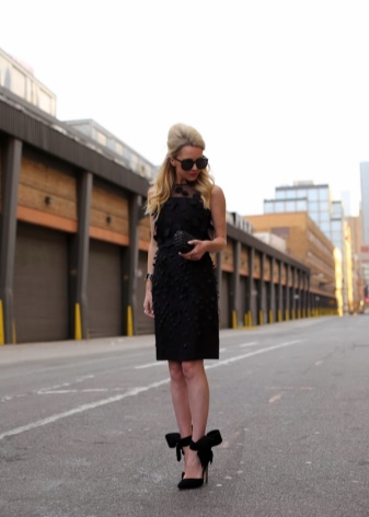 - short dresses with a deep neckline and closed shoulders with classic high-heeled shoes and a bow on the toe or ankle;