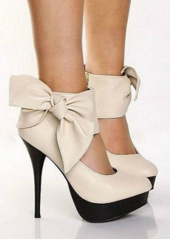 Suede or leather shoes with heels and a platform with ankle bow look stylish and youthful. Multicolored models with a platform or a wedge look equally bright and attractive. Pointed shoes with high elegant heels, as a rule, are decorated with large bows that give the evening a special chic and shine.