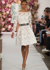 - Laced Dress for yoke. Most often, these dresses are classified as "on a special occasion" - a party, a romantic date. For the evening version of them pick up the shoes and high-heeled shoes, but in the afternoon it can be equipped with sandals or shoes on the platform.