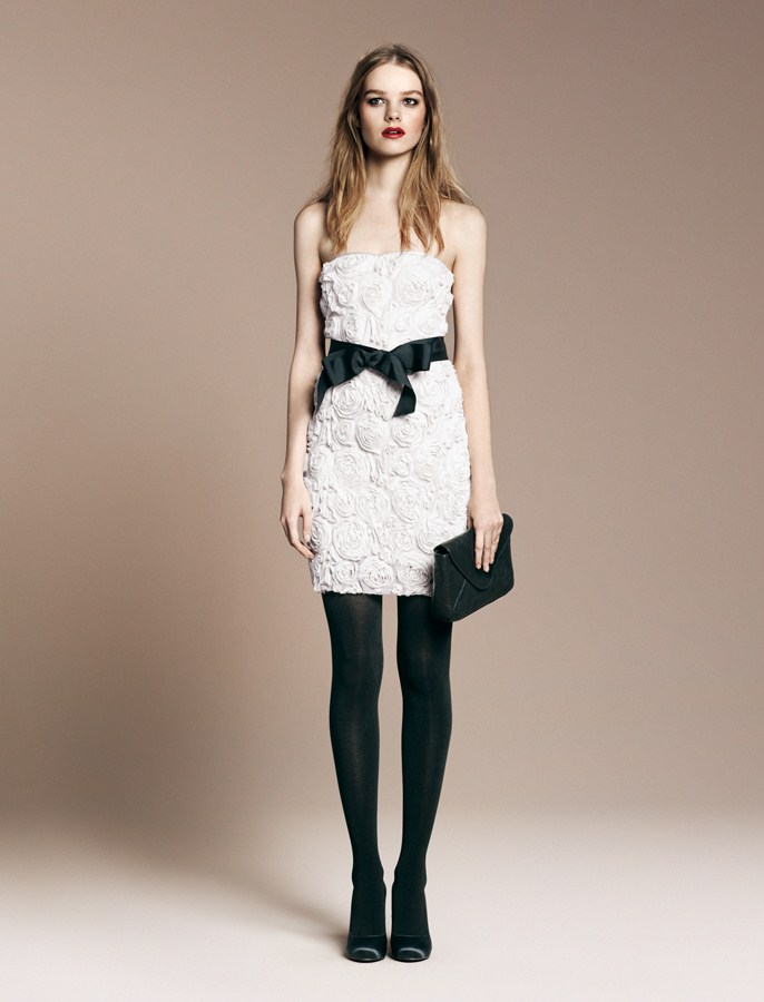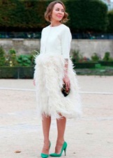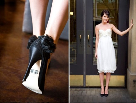 - To the party. White cocktail or delicate lace with extravagant bright high-heeled shoes, heels complemented by bolero in color will create a profitable trio. The classic version is a black and white combination.